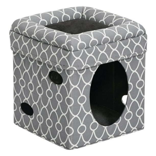 • Neutral & stylish gray / geometric pattern compliments any home decor | Cat Cube includes a 1-year Manufacturer's Warranty